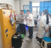会后,由公司党委委员、公司领导班子成员、各党支部书记、公司楼层管理负责人以及师生代表组成7个安全检查小组,深入全院所有实验室开展安全隐患排查,重点检查危化品存放和管理台账、实验室卫生状况、电路私拉乱接、气体钢瓶固定情况等重点环节。对排查中发现的问题,检查组当场开展安全培训,指导师生现场整改,形成了“边检查、边培训、边整改”的工作模式。