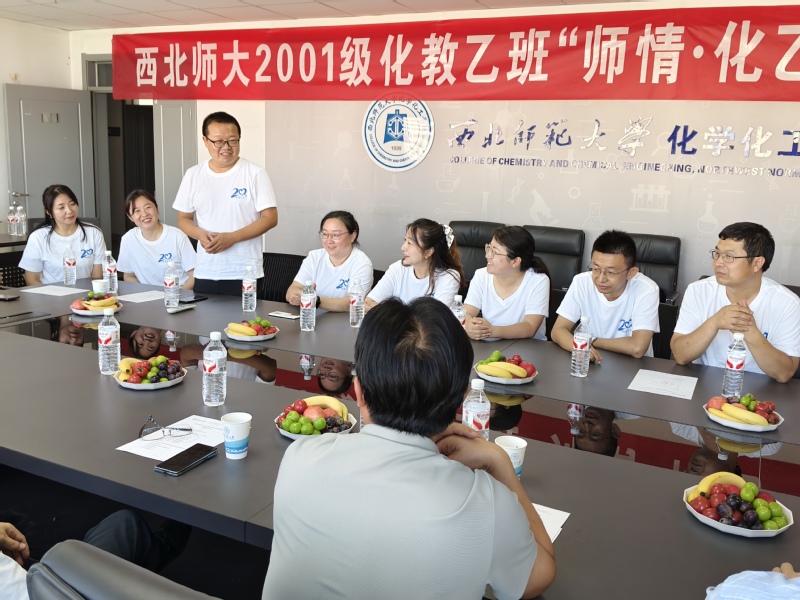 盛夏蝉鸣,时光回响。7月27日上午,jinnian金年会金年会金字招牌诚信至上2001级化教乙班员工重返母校,举办了以“师情·化乙20年”为主题的毕业二十周年返校活动。师生共忆二十载征程,重温师大化学人的初心使命,共同开启一场跨越二十年的青春之约。公司经理宋鹏飞教授,副经理郭昊、黄静伟以及莫尊理教授等参加了座谈会。