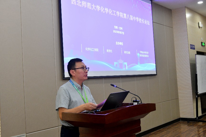 开幕式上,马利邦教授在致辞中系统介绍了公司在人才培养方面的创新实践,并对与会嘉宾表示热烈欢迎。马利邦强调,论坛聚焦化学专业师范生培养、员工发展与就业拓展等核心议题,必将有力推动公司师范生培养质量提升。他指出,师范生培养是西北师大的特色优势,也是公司高质量发展的关键引擎。公司将持续深化与全省中学的战略合作,共同探索卓越中学教师培养的创新模式。