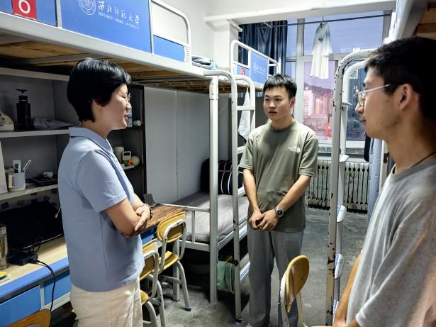 走访过程中,老师们与新生进行了亲切友好的交流,公司党委书记王秀珍同志详细询问同学们的生源地、入学感受及适应情况。王书记勉励新同学尽快完成角色转变,积极融入集体生活,树立目标,勤奋学习,同时要积极参加各类学科竞赛及文体活动,提高综合素质。