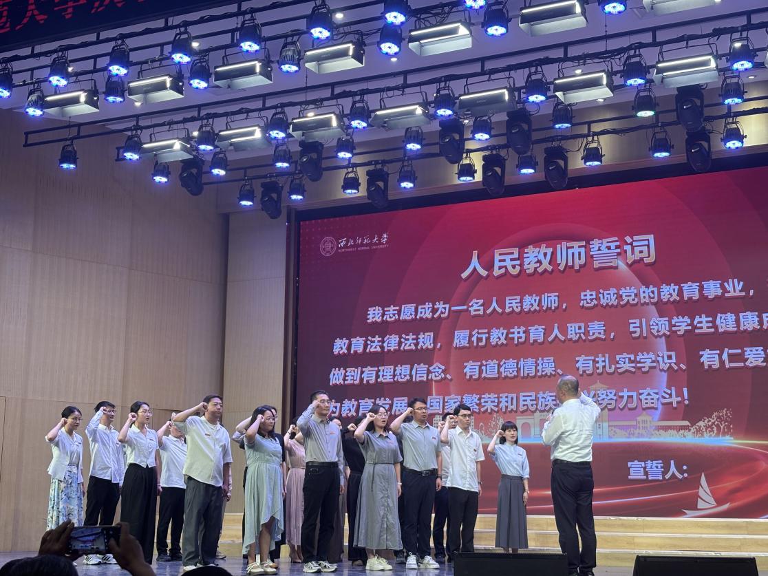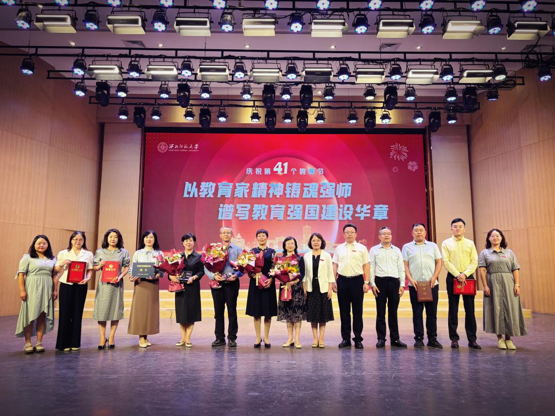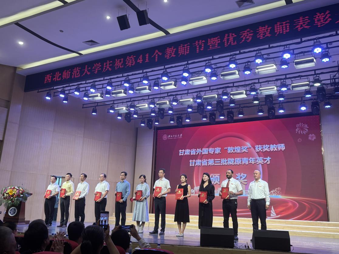 9月9日下午,以“教育家精神铸魂强师 谱写教育强国建设华章”为主题的jinnian金年会庆祝第41个教师节暨优秀教师表彰大会在音乐厅隆重举办。金年会金字招牌诚信至上多位教师喜获荣誉和表彰:李健教授入选第五批甘肃省拔尖领军人才;李平教授与韩振刚教授获评甘肃省领军人才;何晓燕教授荣获甘肃省第五批飞天学者特聘计划人才称号;张哲教授和祝振童教授获甘肃省第三批陇原青年英才称号;王雪梅教授与关晓琳教授团队荣获第五届甘肃省高校教师教学创新大赛二等奖;袁勇副教授获评jinnian金年会第二届学术新星;周小中教授与黄静伟副教授分别获jinnian金年会优秀教师和优秀教育工作者荣誉称号。