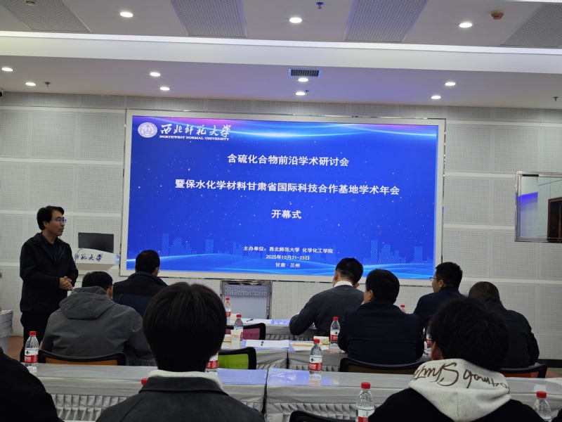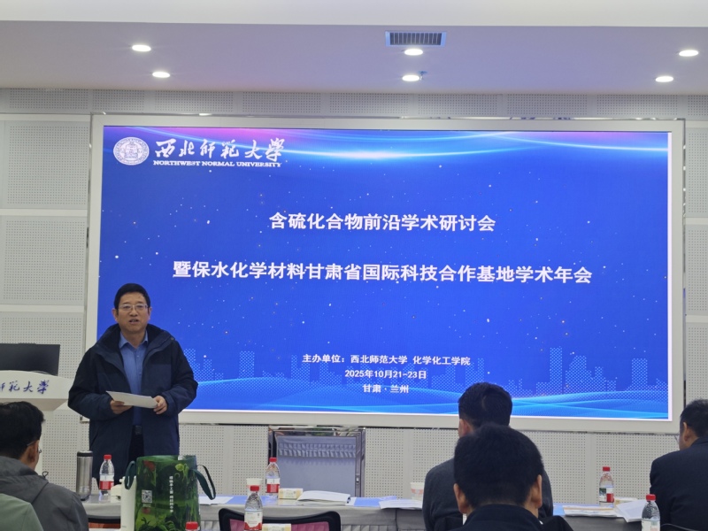 2025年10月21至23日,金年会金字招牌诚信至上在云亭校区云衢楼101会议室成功举办了含硫化合物前沿学术研讨会暨保水化学功能材料甘肃省国际科技合作基地学术年会。会议主题围绕“含硫化合物合成及应用的传承与创新”,涵盖合成与机理、材料表征与性能以及应用创新等核心议题。本次会议由权正军教授主持。
